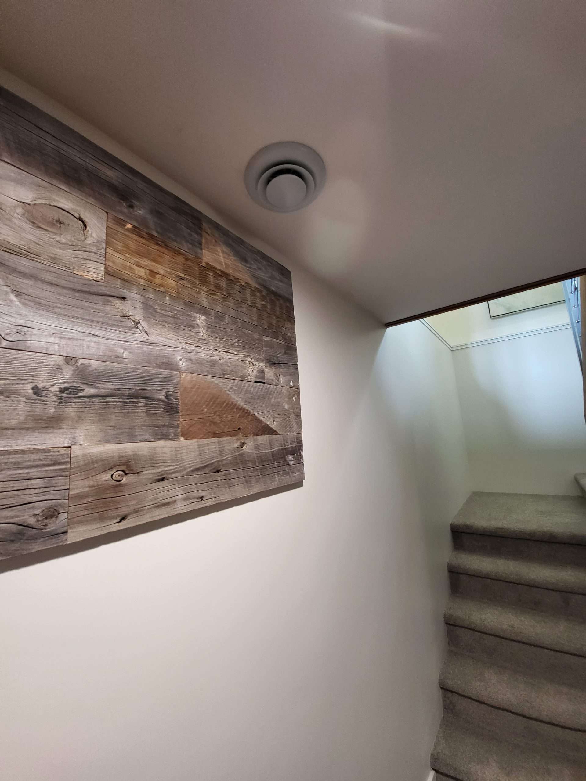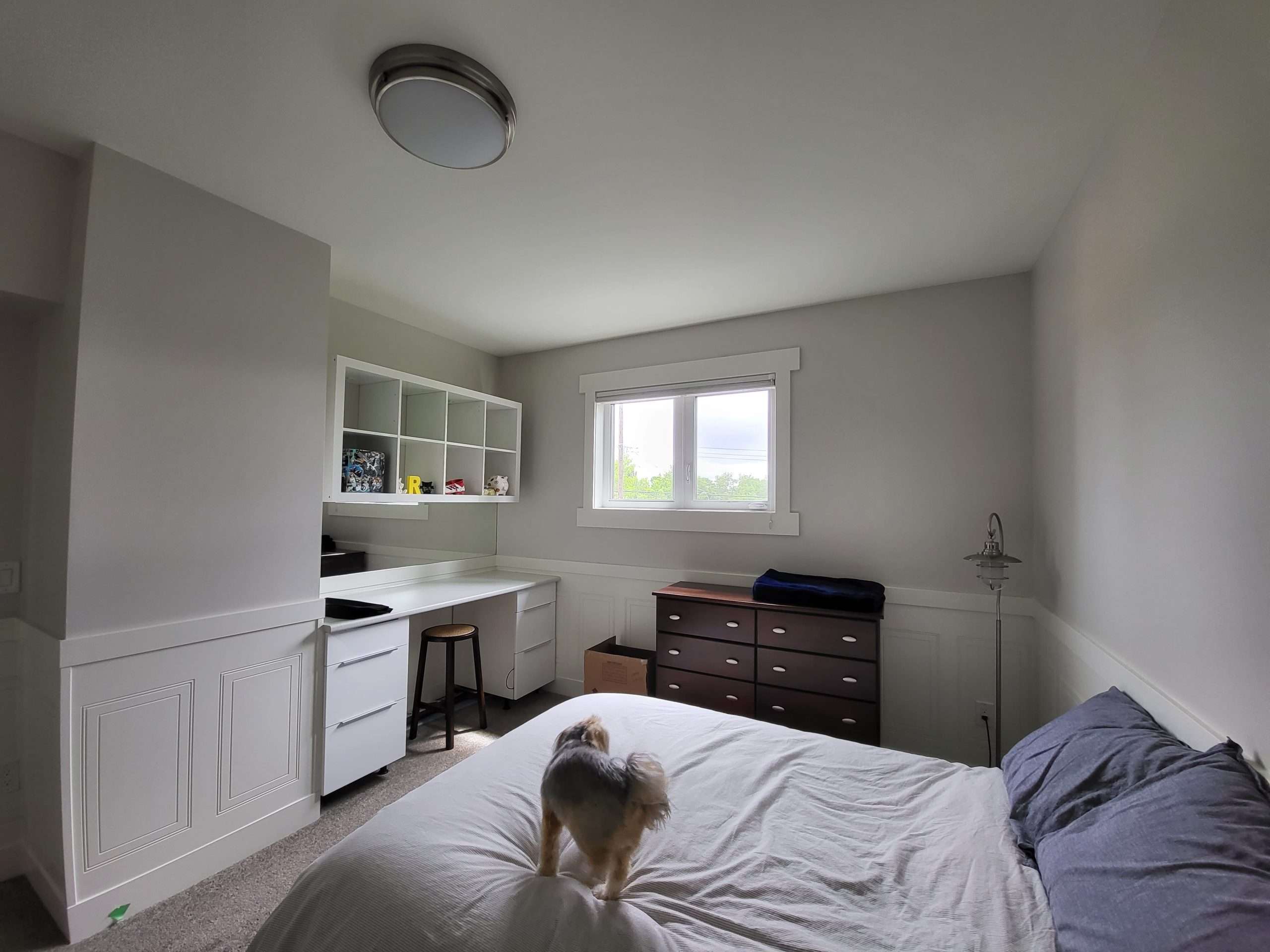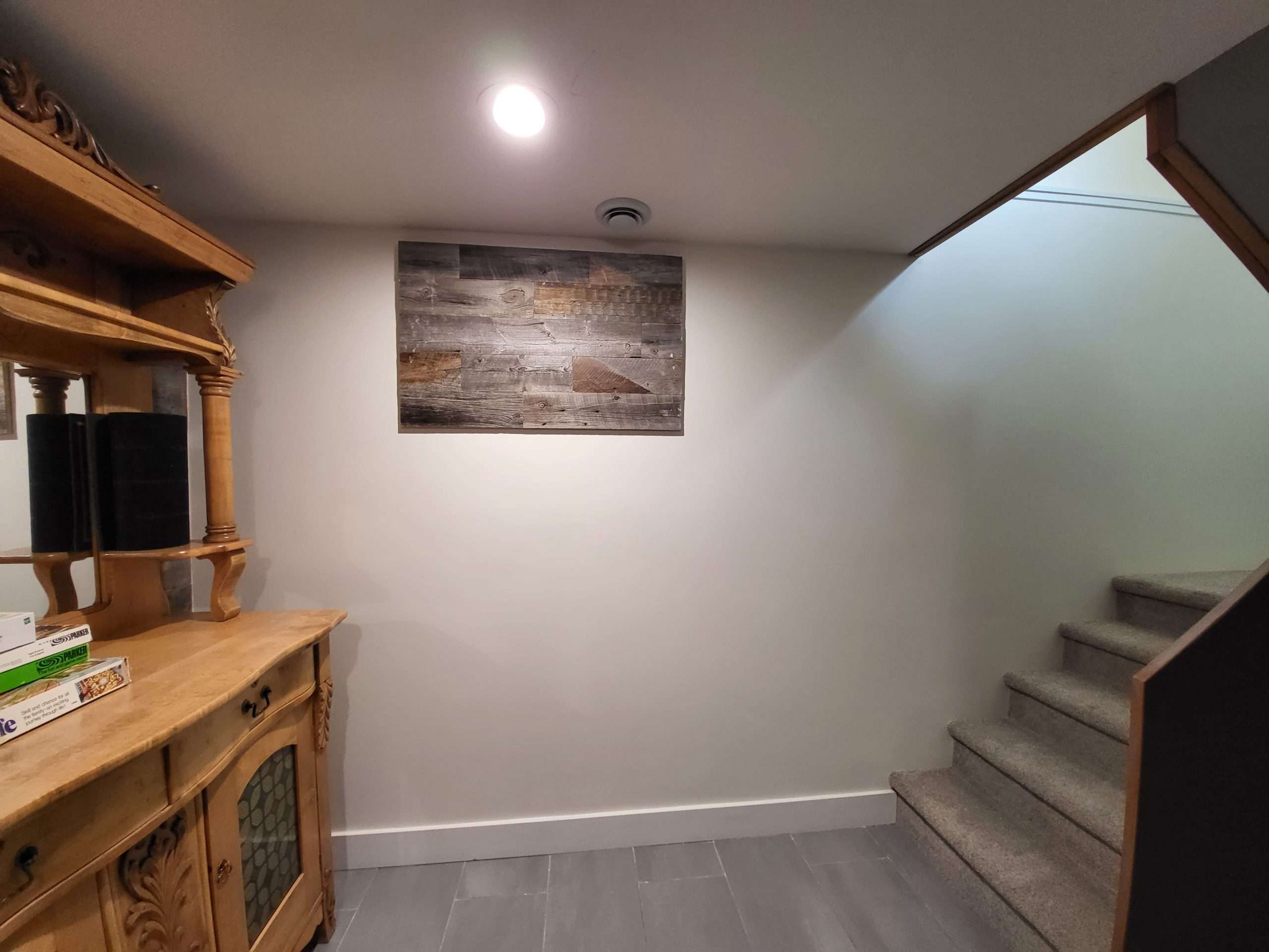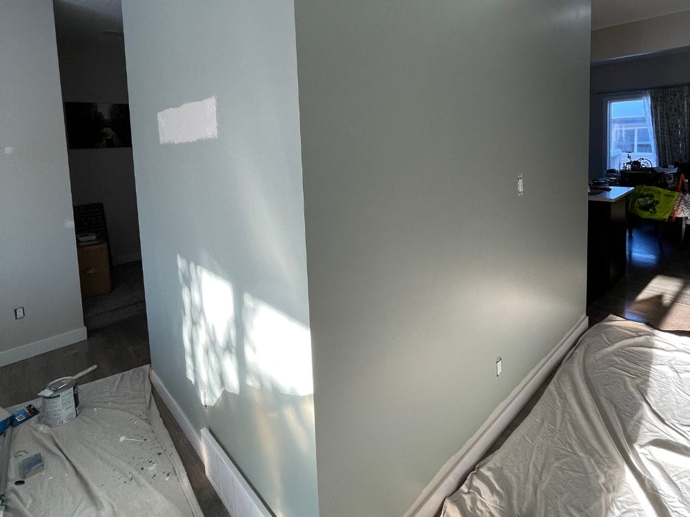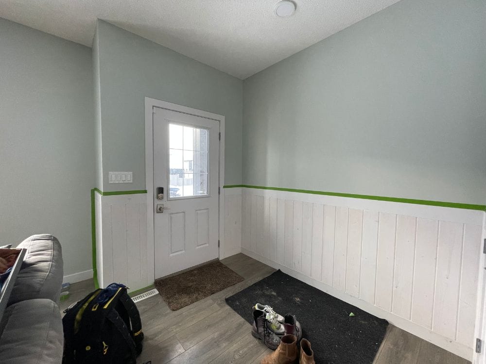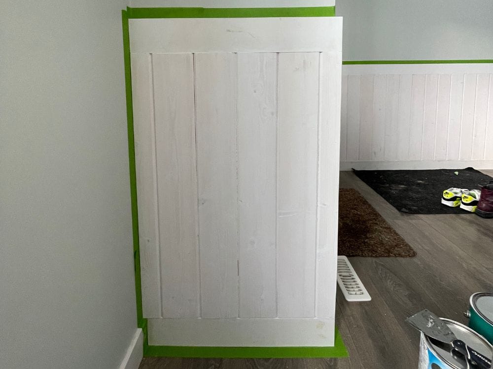 The job originally started out as a paint upgrade (2 colors – main color with feature wall to accent). This is where the project took a turn. The client wanted to add shiplap along a single wall. Upon further discussion, we added a finishing touch to the shiplap by extending it to a natural break (corner of the room).