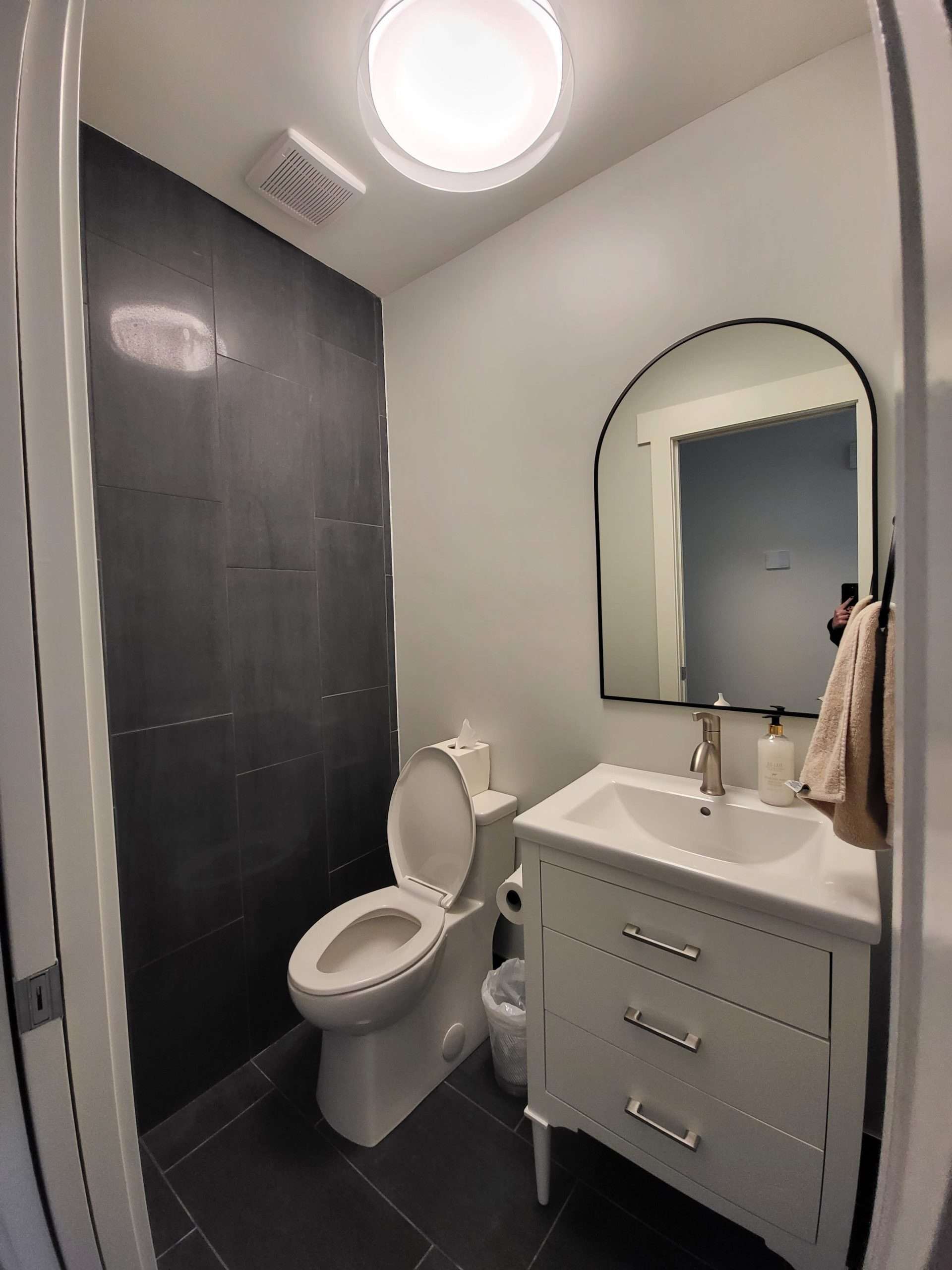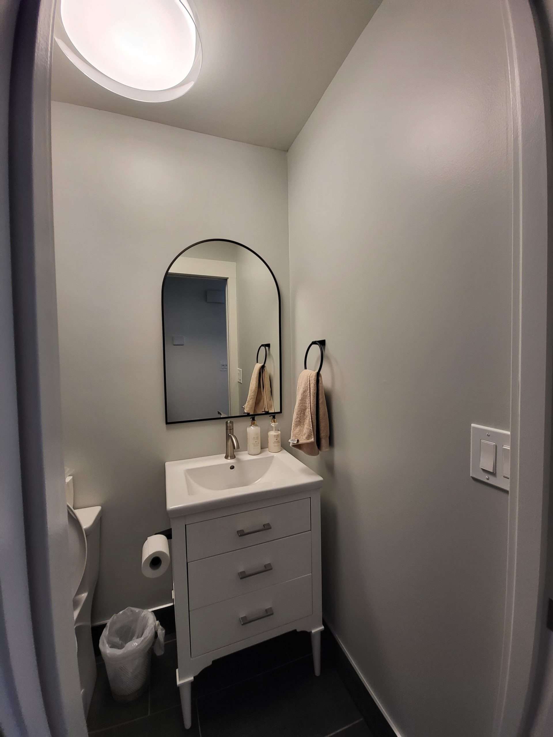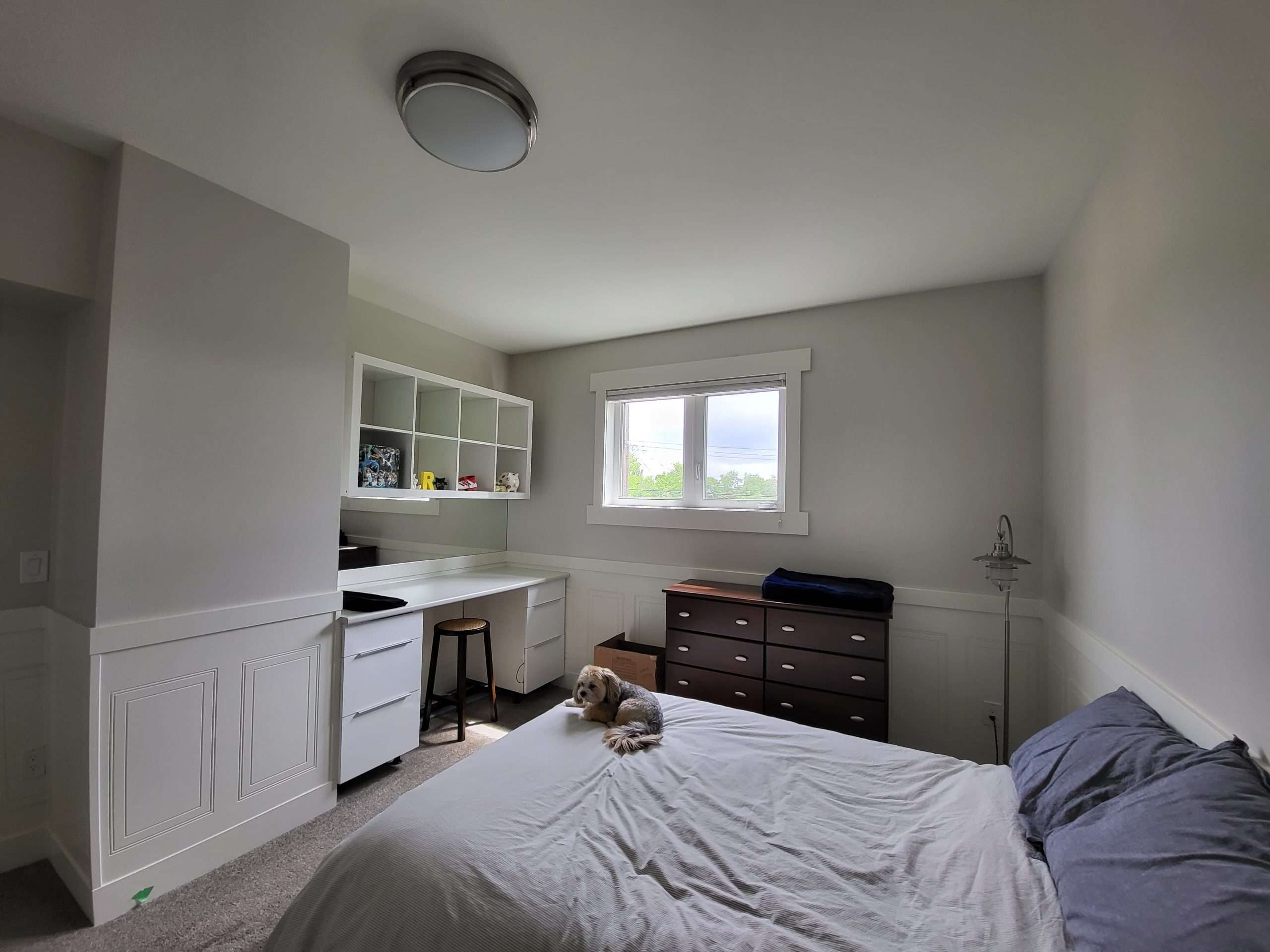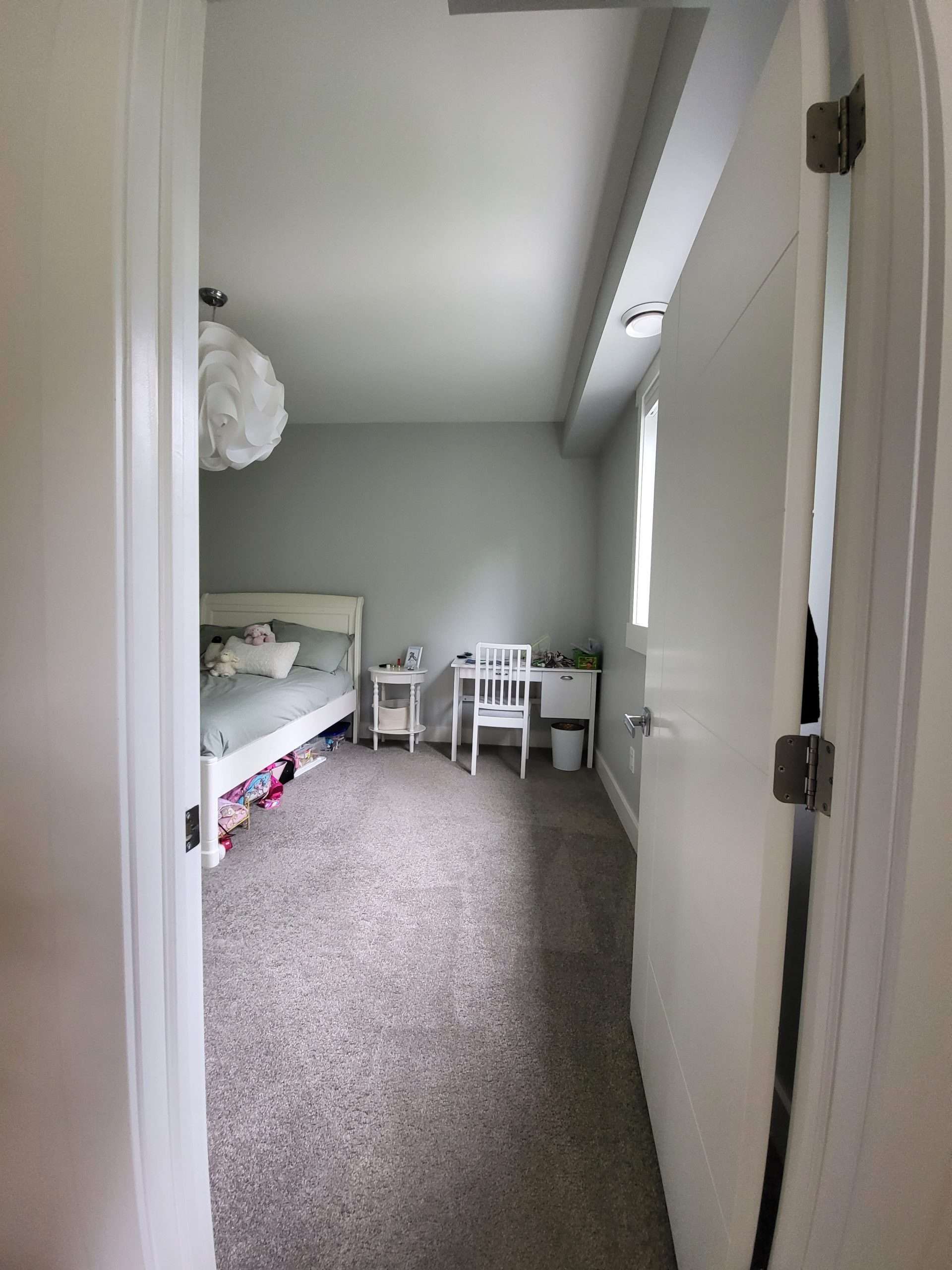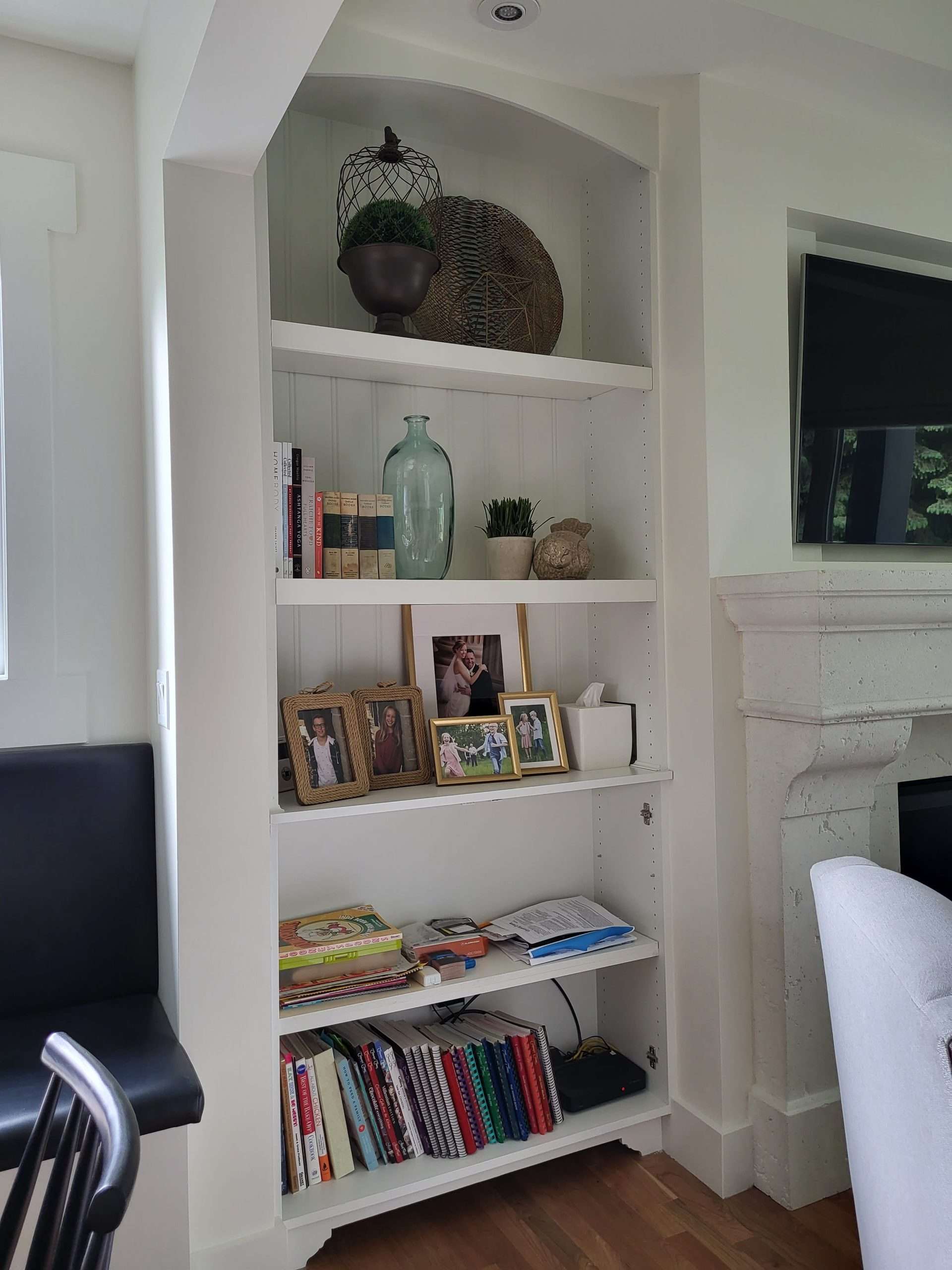The job originally started out as a paint upgrade (2 colors – main color with feature wall to accent). This is where the project took a turn. The client wanted to add shiplap along a single wall. Upon further discussion, we added a finishing touch to the shiplap by extending it to a natural break (corner of the room).