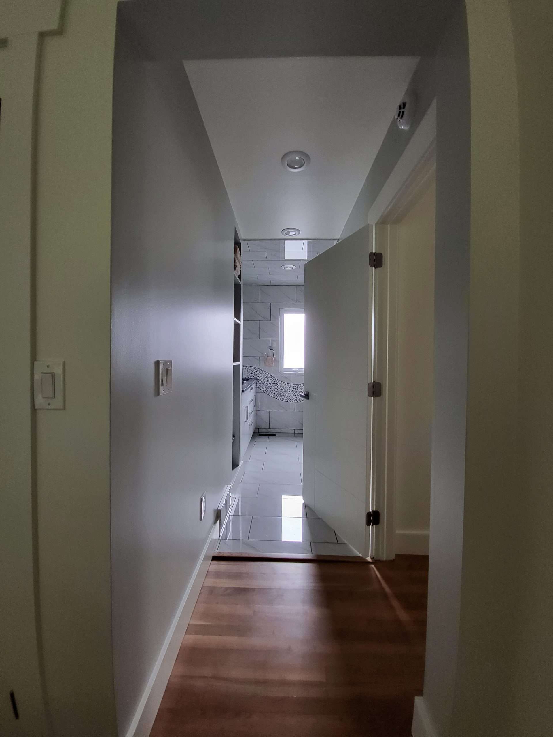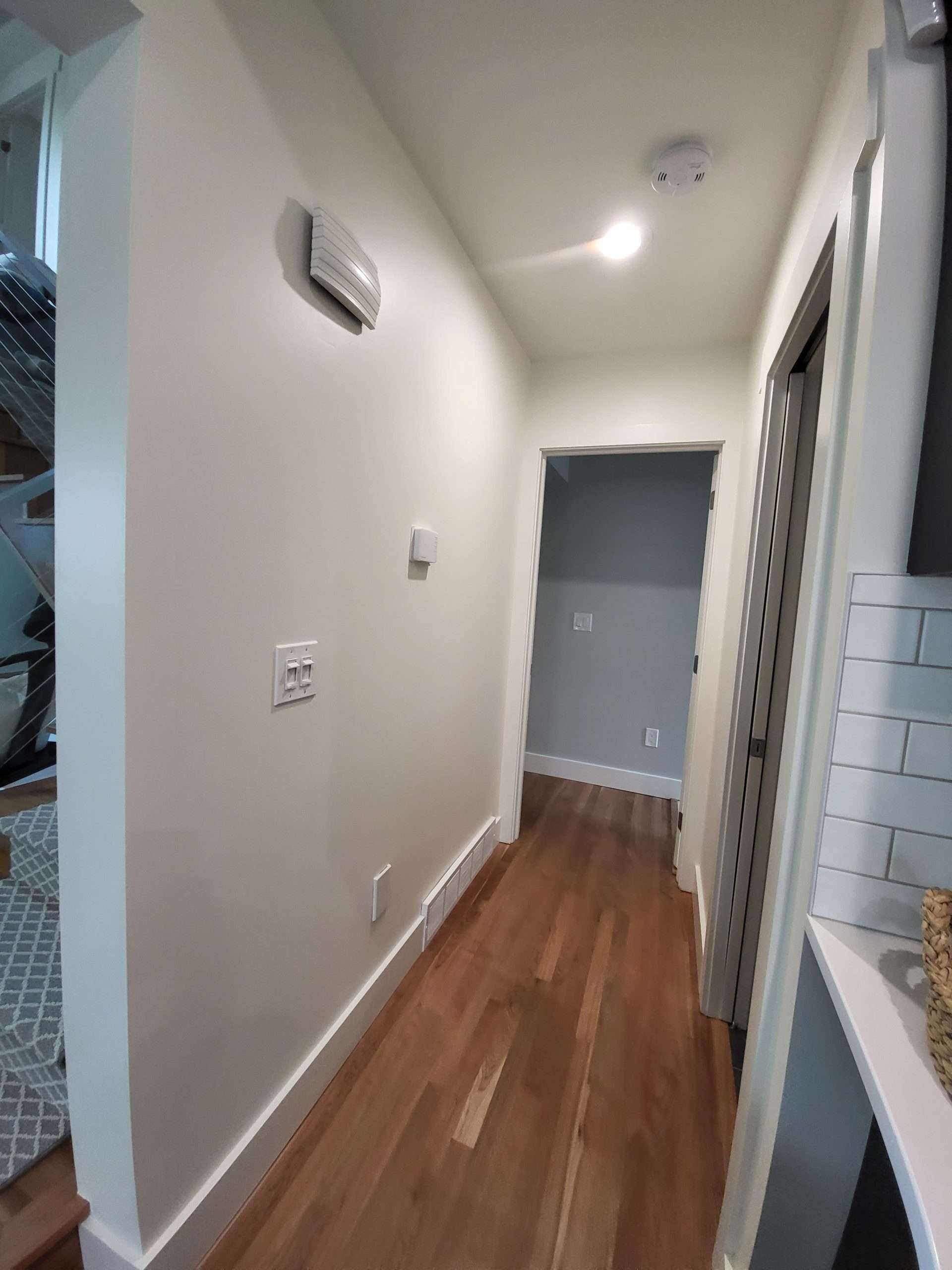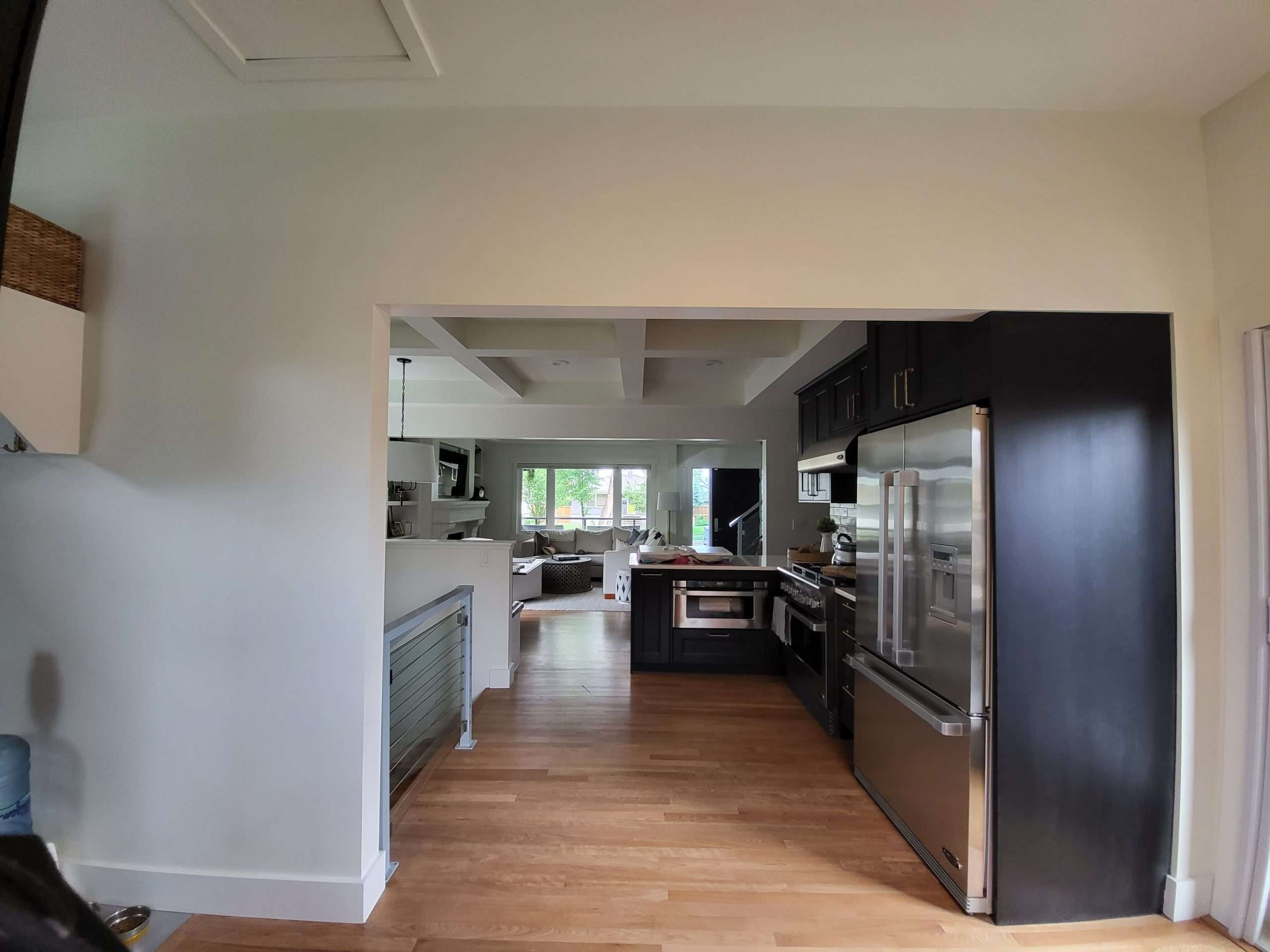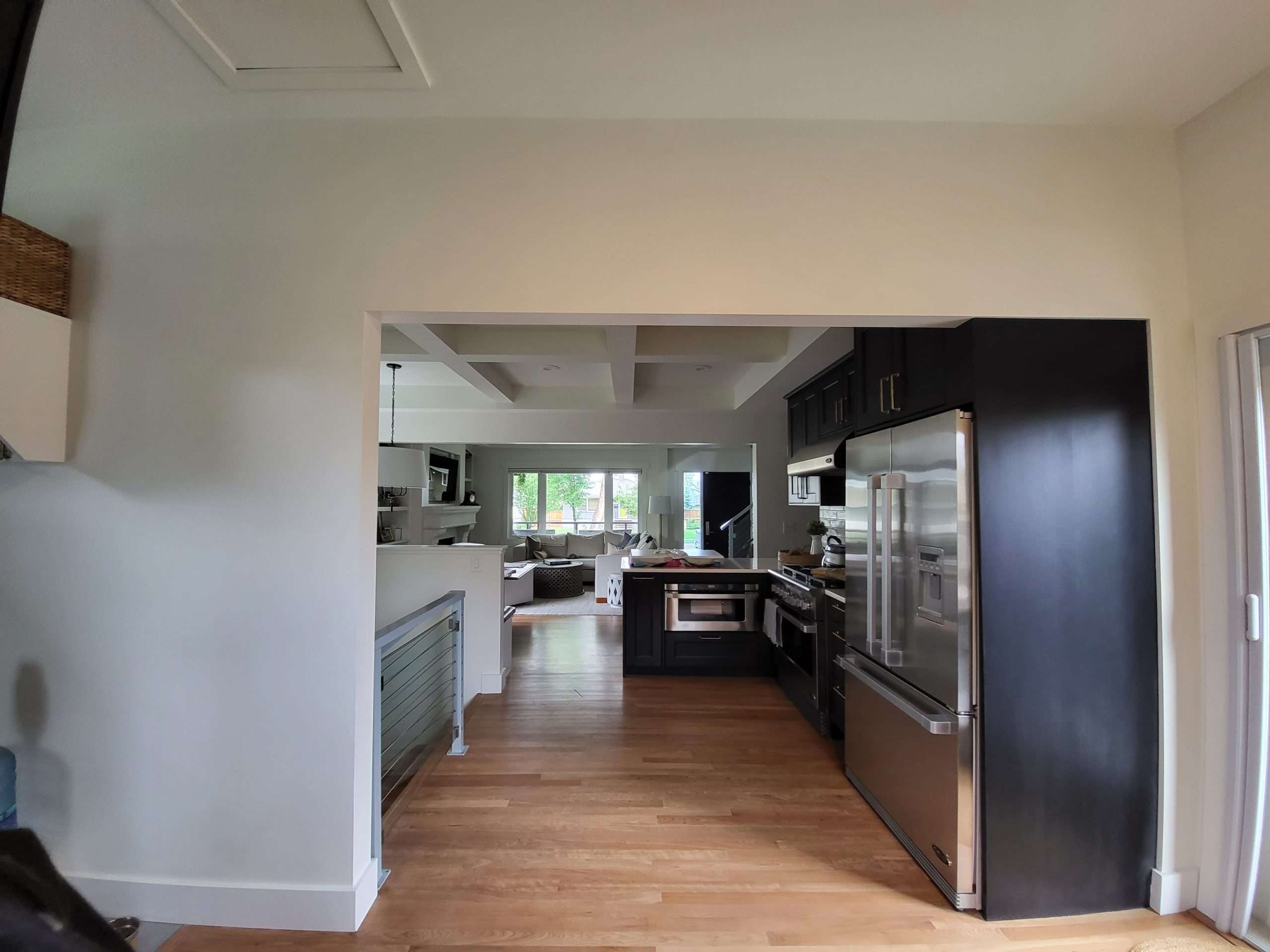All ceilings, walls, baseboards, and trim were painted throughout the home. Over the areas where the flooring was being upgraded the baseboards and trim were removed completely, painted, and reinstalled. After installation nail holes were repaired then a second coat of paint was applied.