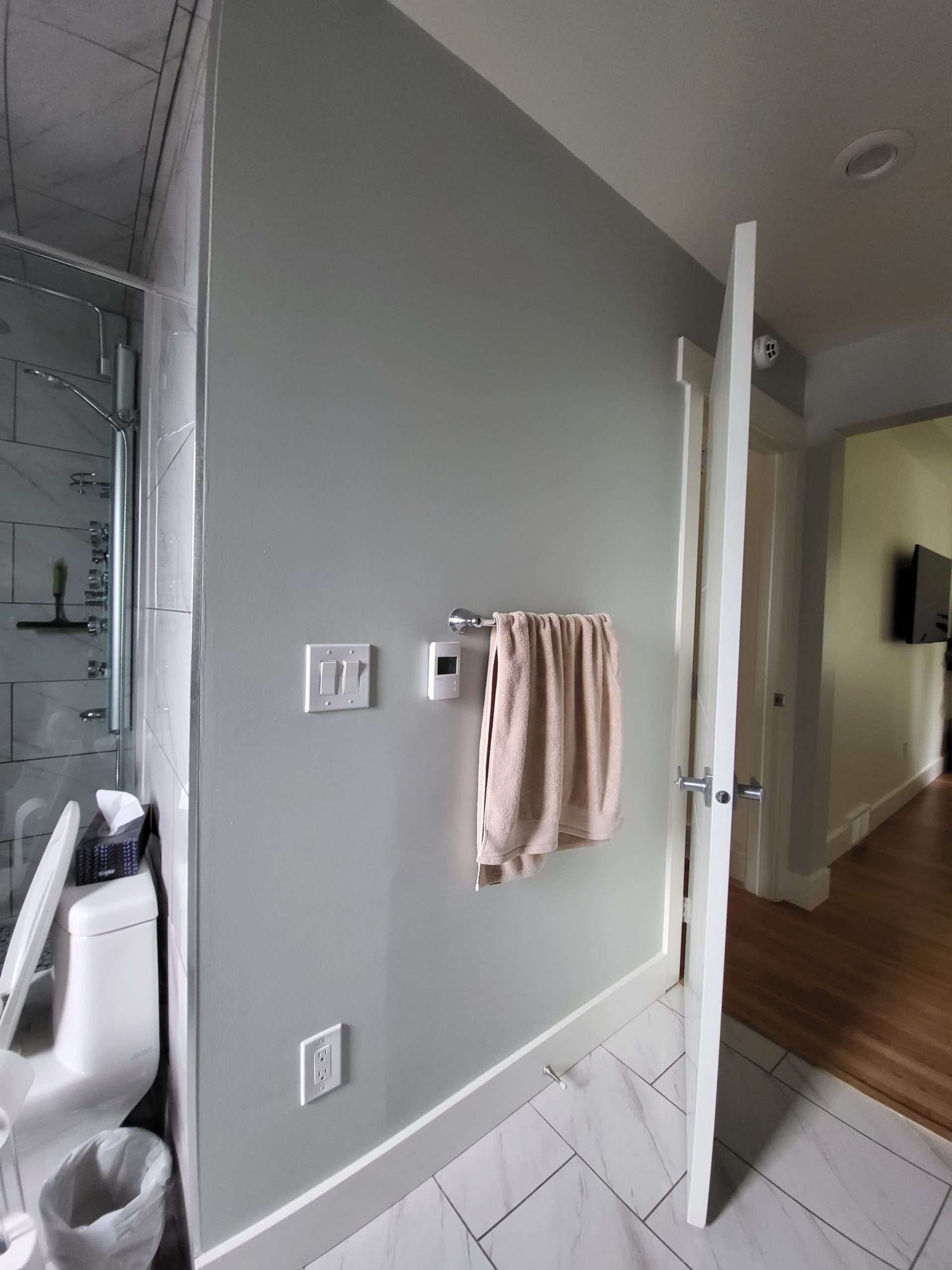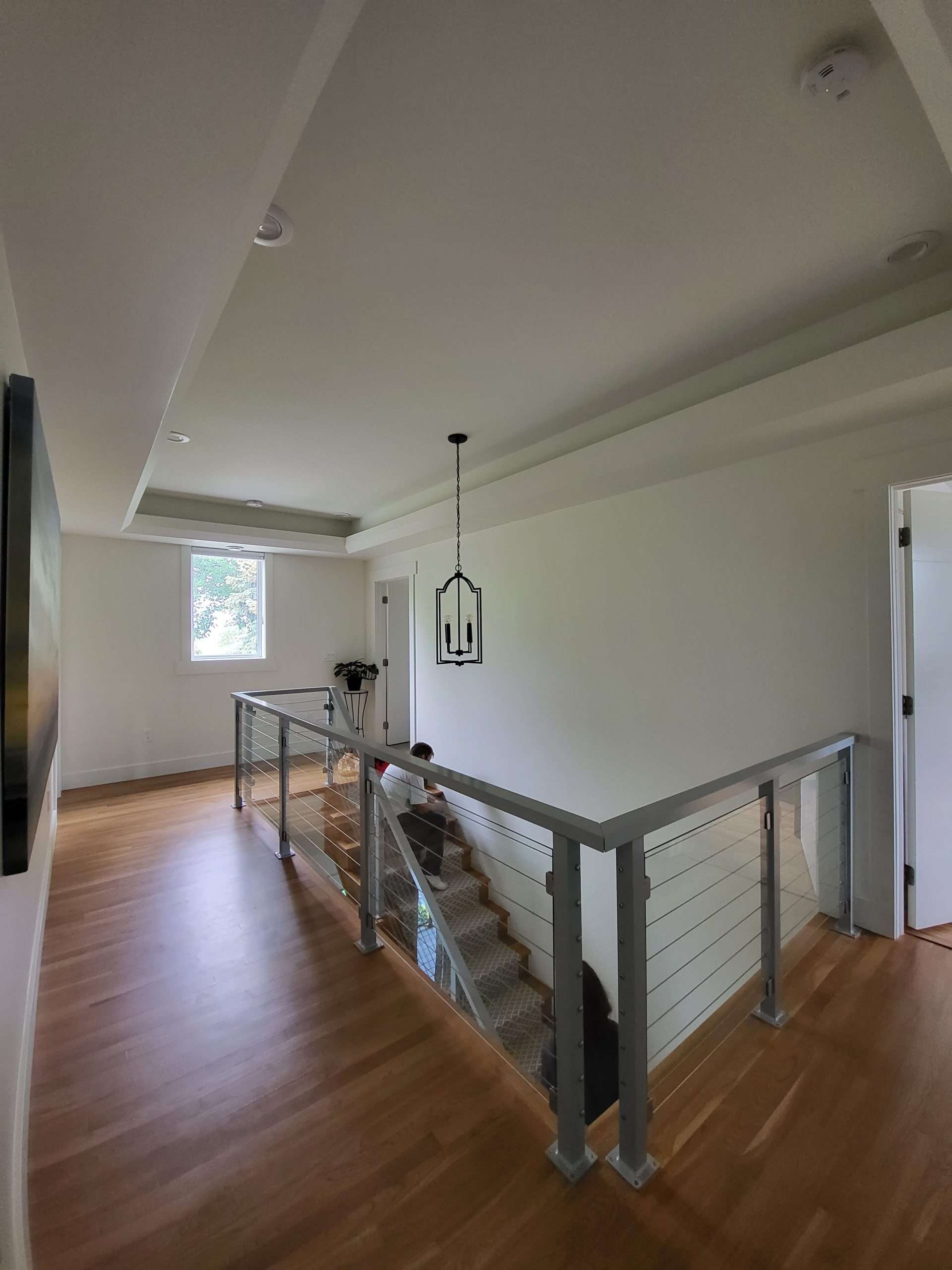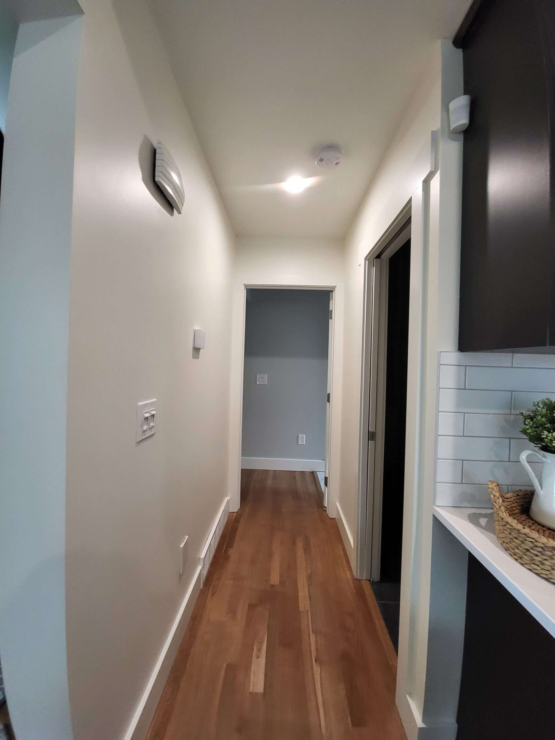 All ceilings, walls, baseboards, and trim were painted throughout the home. Over the areas where the flooring was being upgraded the baseboards and trim were removed completely, painted, and reinstalled. After installation nail holes were repaired then a second coat of paint was applied.