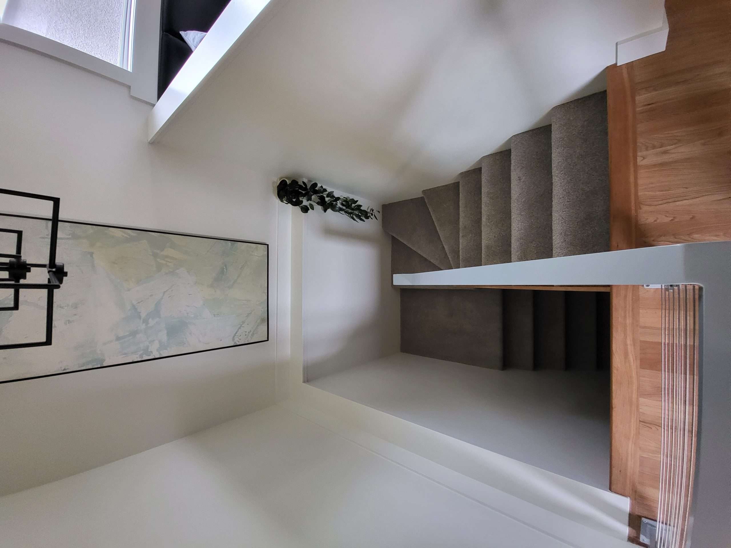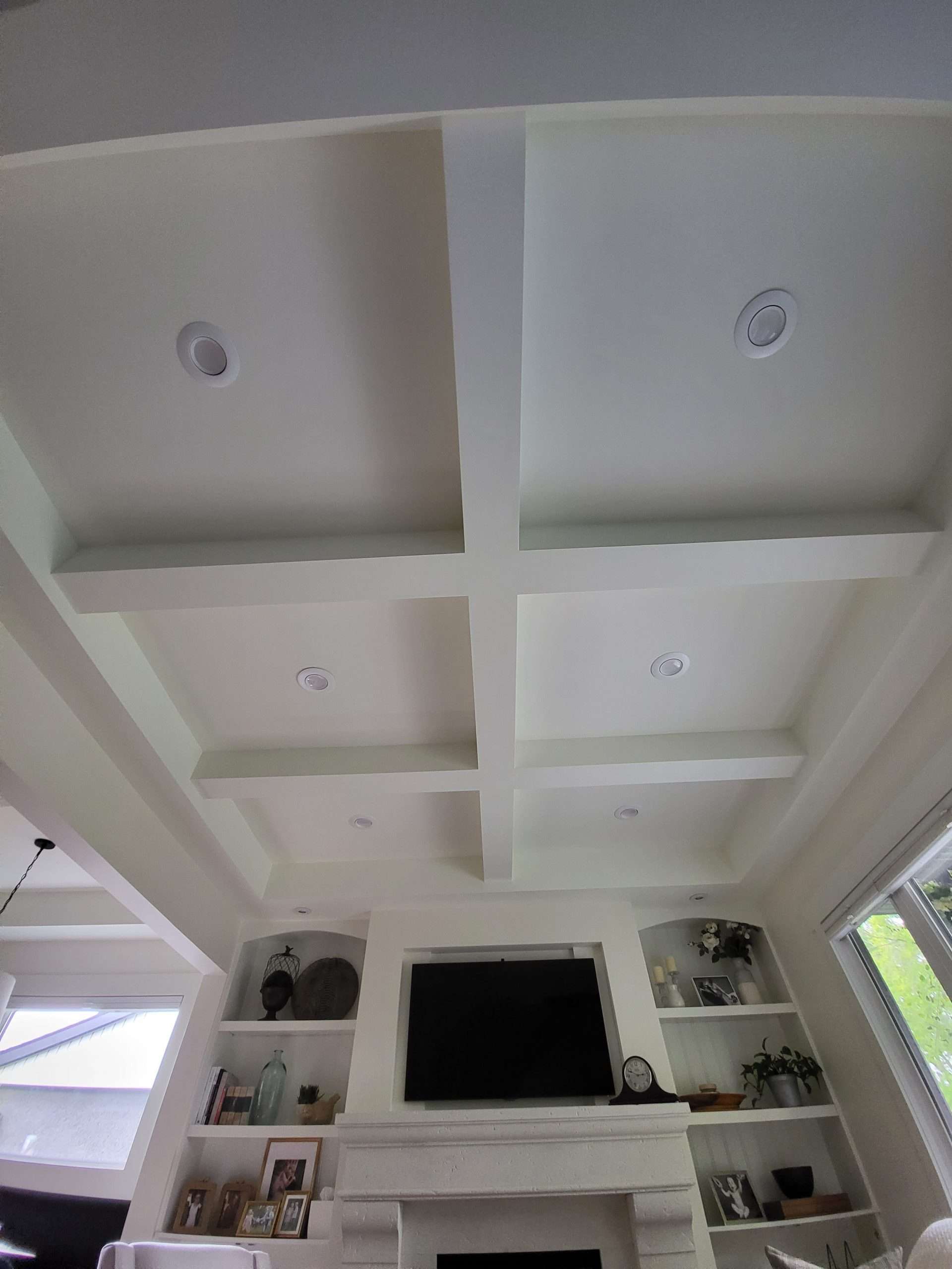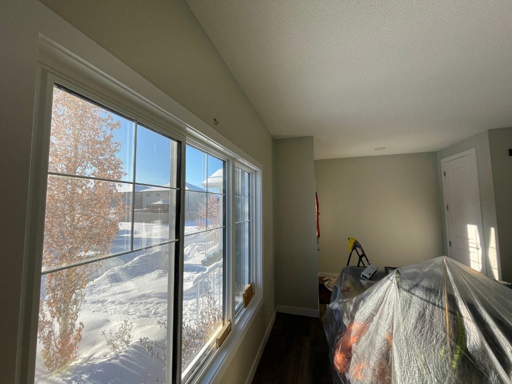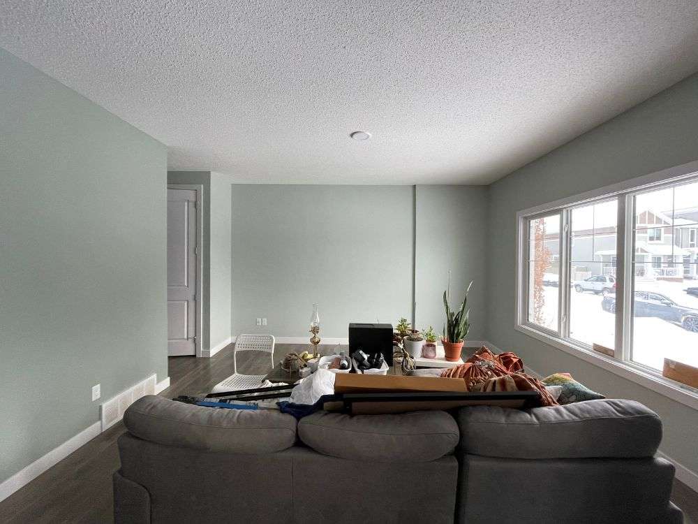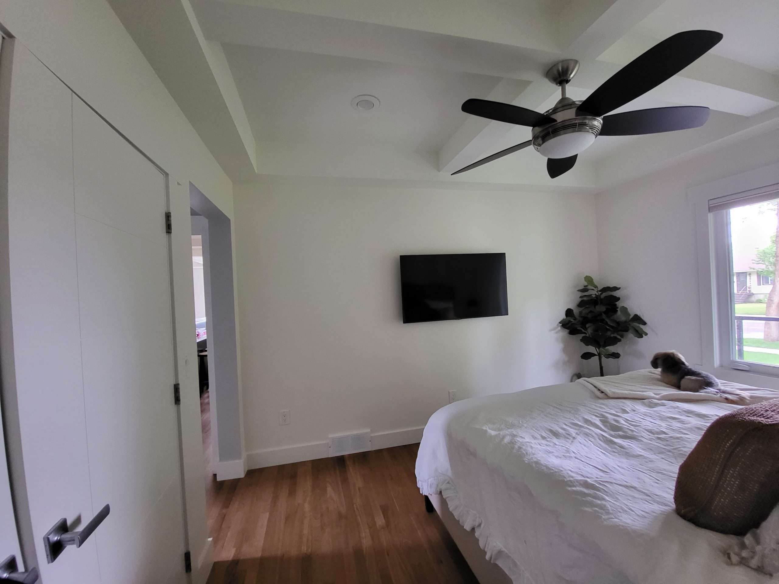 All ceilings, walls, baseboards, and trim were painted throughout the home. Over the areas where the flooring was being upgraded the baseboards and trim were removed completely, painted, and reinstalled. After installation nail holes were repaired then a second coat of paint was applied.