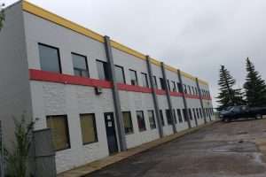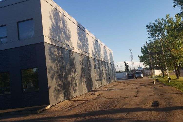 We started the preparations by completely removing all loose material (pressure wash building). Once the peeling paint was removed the edges of the existing paint was sealed before primer coat was applied.
